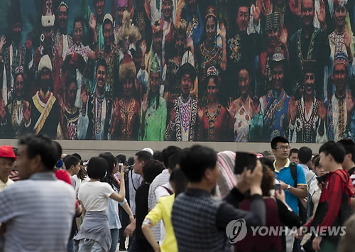 | △ 신장 '화약고'서 폭발사건 (AP=연합뉴스) 지난 5월1일 중국 베이징 톈안먼(天安門) 광장의 선전용 스크린에 신장(新疆)지역 소수민족들의 다양한 얼굴과 의상들이 비쳐진 모습. 신장 위구르자치구 바인궈렁(巴音郭楞) 몽고족자치주 룬타이(輪台)현에서 21일 오후 5시(현지시간)께 동시 다발적인 폭발 사건이 발생, 2명이 숨지고 다수가 부상했다. 중국의 '화약고'로 불리는 신장에서는 올들어 7월 말 사처현에서의 칼부림 테러를 비롯 수도 우루무치(烏魯木齊)에서 4, 5월 잇따라 폭탄테러가 발생하는 등 크고 작은 테러가 끊이지 않고 있다. bulls@yna.co.kr |