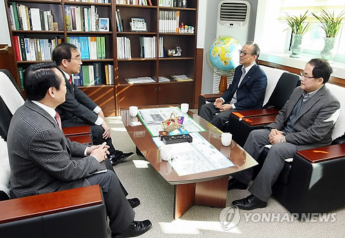 | △ 이희국 LG 창조경제혁신센터추진단장 청주시청 예방 (청주=연합뉴스) 박재천 기자 = 이희국 LG 창조경제혁신센터추진단장(LG그룹 사장)이 지난달 12일 이승훈 청주시장을 방문, 혁신센터 활성화 등을 위한 협업 방안을 놓고 환담한 바 있다. 2015.2.3 <<청주시 제공>> jcpark@yna.co.kr |