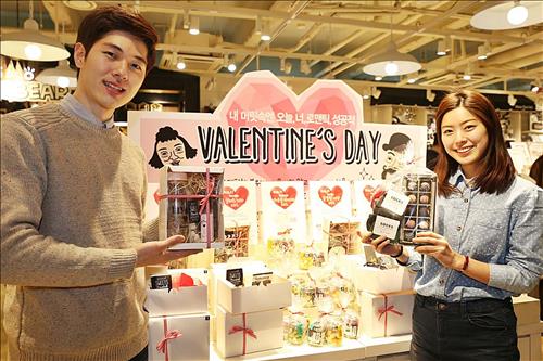 도자기 텀블러와 초코볼이 함께 포장된 '내 마음을 shake한 너! 세트'는 1만900원에, 커플 양말과 수제 초콜릿을 담은 '발끝까지 너와 함께 세트'는 1만5천900원에 판매한다.