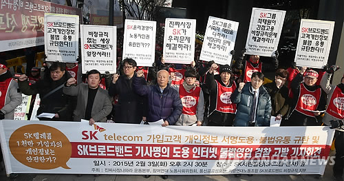 이들 단체는 "SK브로드밴드 비정규직 조합원 700여명이 SKT 고객센터를 방문해 개인정보 유출 실태를 파악한 결과 11%가 본인 의사와 무관하게 도용한 서명으로 각종 정보제공에 동의한 것으로 돼 있었다"고 주장했다.