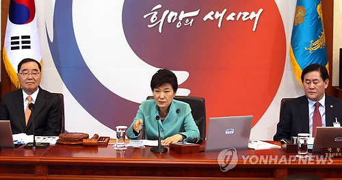 | △ 국무회의서 발언하는 박 대통령 (서울=연합뉴스) 도광환 기자 = 박근혜 대통령이 3일 오후 청와대에서 열린 국무회의에서 현안에 대해 발언하고 있다. |