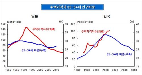 일본 사회가 고령화되면서 주택을 구입하는 연령대인 35∼54세 인구비중이 1990년대 들어 감소한 것은 주택가격 하락의 원인이 됐다.