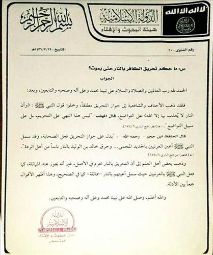 이 작성일이 조작됐을 수 있지만 요르단 조종사의 살해 시점이 지난달 3일이라는 보도도 있는 만큼 불에 태워 죽인 뒤 이를 정당화하기 위해 이 파트와 문서를 제작, 동영상 공개와 함께 유포한 것으로 추정할 수도 있다.
