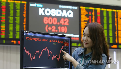 | △ 코스닥 6년 8개월만에 600선 돌파 (서울=연합뉴스) 김도훈 기자 = 코스닥이 600선을 돌파한 5일 오전 서울 여의도 한국거래소 홍보관에서 직원이 코스닥 지수를 확인하고 있다. 코스닥이 600선을 넘은 것은 지난 2008년 6월 26일(602.74) 이후 처음이다. superdoo82@yna.co.kr |