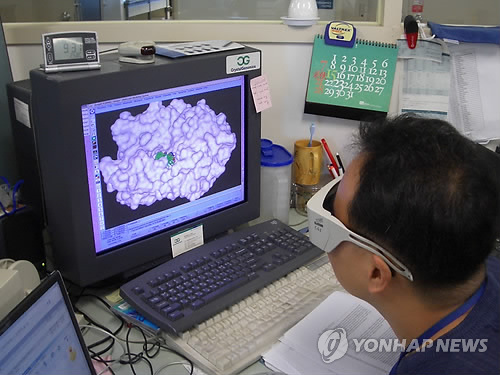 | △ 크리스탈지노믹스 골관절염치료제 '아셀렉스캡슐' 식약처 허가 (서울=연합뉴스) 식품의약품안전처는 제22호 국산 신약인 크리스탈지노믹스의 골관절염 치료제 '아셀렉스캡슐'의 제조와 판매를 허가했다고 5일 밝혔다. 아셀렉스캡슐은 '폴마콕시브'를 주성분으로, 골관절염 환자의 증상이나 징후를 완화하는 소염진통제다. 사진은 성남 판교에 위치한 크리스탈지노믹스 연구실 모습. 2015.2.5 << 크리스탈지노믹스 제공 >> photo@yna.co.kr |