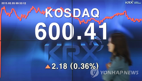 | △ 코스닥 600선 돌파 (서울=연합뉴스) 김도훈 기자 = 코스닥이 600선을 돌파한 5일 오전 서울 여의도 한국거래소 대형스크린 앞을 직원이 지나고 있다. 코스닥이 600선을 넘은 것은 지난 2008년 6월 26일(602.74) 이후 처음이다. superdoo82@yna.co.kr |
