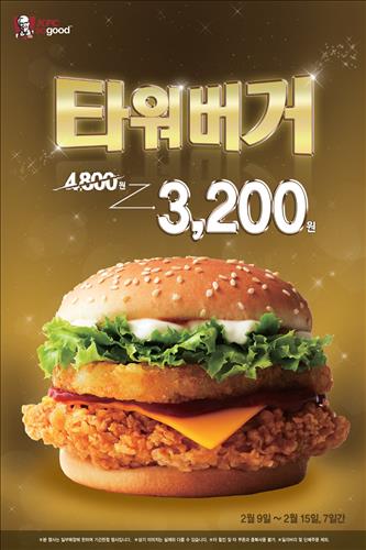 (서울=연합뉴스) 김희선 기자 = KFC는 오는 9일부터 일주일간 '타워버거'를 할인 판매한다고 6일 밝혔다.