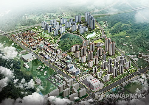 | △ 용인역북지구 조감도 (용인=연합뉴스) 경기도 용인도시공사가 처인구 역북동 시청앞 41만7천㎡에 조성 중인 역북지구 조감도. 2015.2.6 <<용인도시공사 제공>> kcg33169@yna.co.kr |