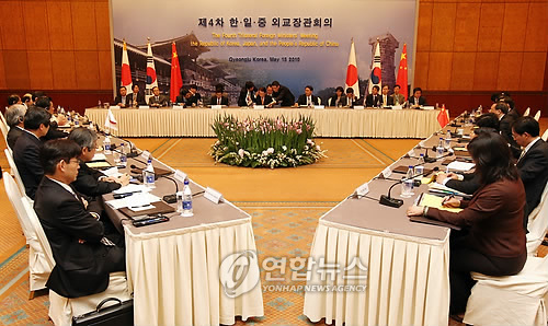 | △ 지난 2010년 경주 힐튼호텔에서 열린 한ㆍ일ㆍ중 외교장관회의 (연합뉴스 자료사진) |