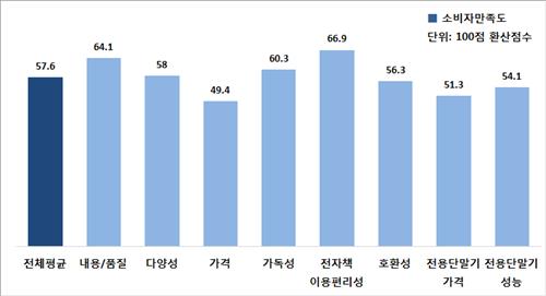 가격 만족도가 49.4점으로 꼴찌였다. 소비자들이 기대하는 전자책 가격은 종이책의 평균 39.2% 수준으로 집계됐다.