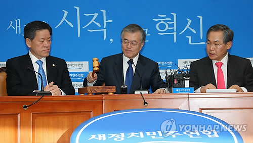 | △ 문재인 대표 최고위 주재 (서울=연합뉴스) 백승렬 기자 = 새정치민주연합 문재인 신임 대표가 9일 국회에서 열린 취임 후 첫 최고위원회의에서 개회를 선언하고 있다. |