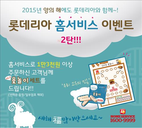 (서울=연합뉴스) 최이락 기자 = 롯데리아는 설 명절을 맞아 홈서비스로 1만3천원 이상 주문한 고객에게 '청양띠 미니 윷놀이 세트'를 증정한다고 10일 밝혔다.
