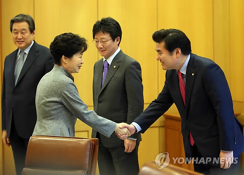 박 대통령과 김 대표가 제대로 마주하기는 올해 들어 처음이다. 신년인사회 등공식 행사에서 마주친 것을 제외하면, 두 사람이 제대로 대화를 나눈 것은 지난해 12월7일 예산안 통과 직후 당 지도부와 예산결산특위 위원들 청와대 오찬이 마지막이었다.
