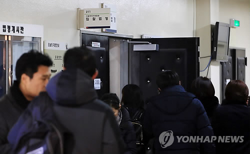 | △ 지난 3일 경매가 열린 서울 중앙지법 입찰 법정에 들어가는 응찰자들. |