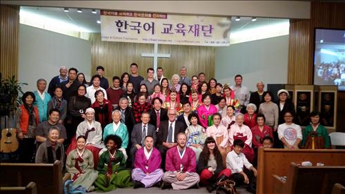 캘리포니아주 한글학교 교사들이 모여 만든 한국어교육재단(이사장 구은희)은 지난 7일(현지시간) 오후 서니베일 소재 대성장로교회에서 주류사회와 함께하는 '2015년 설 잔치'를 열었다. 한국어교육재단은 한국어 교육, 한국 문화 홍보, 차세대 지도력 향상 등을 목표로 세워진 비영리단체다.