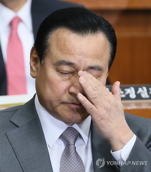 | △ 굳은 표정의 이완구 후보자 (서울=연합뉴스) 진성철 기자 = 이완구 국무총리 후보자가 10일 국회에서 열린 인사청문회에서 굳은 표정으로 자리에 앉아 야당 위원들의 입장을 기다리고 있다. |
