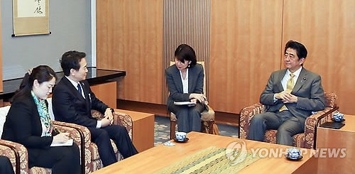 (도쿄=연합뉴스) 최찬흥 기자 = 외무성 초청으로 일본을 공식방문 중인 남경필 경기지사가 10일 아베 신조(安倍晋三) 일본 총리를 만나 한일 정상회담 성사를 위해 위안부 문제에 대해 전향적으로 접근할 것을 제안했다.