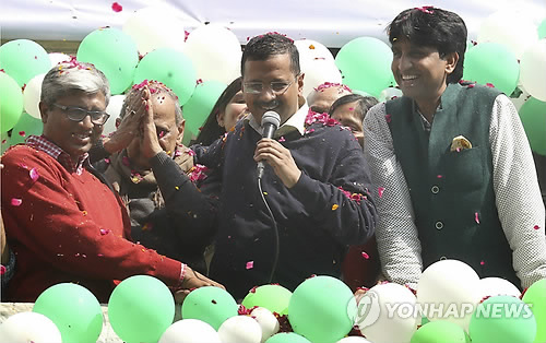 (뉴델리=연합뉴스) 나확진 특파원 = 인도 수도 델리 주 의회 선거에서 신당 아마드미당(AAP·보통 사람들의 정당)이 10일 압승을 거두면서 다시 주 총리에 취임하게 된 아르빈드 케지리왈(47) AAP 대표가 나렌드라 모디 총리의 대항마가 될 것인지 관심이 쏠린다.
