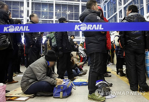 | △ 설 연휴 열차승차권 예매가 시작된 지난달 8일 오전 서울역에서 시민들이 기차표를 구하기 위해 줄을 서서 기다리고 있다. (연합뉴스 자료사진) |