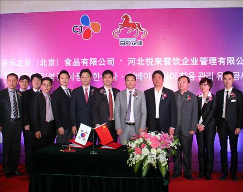 (서울=연합뉴스) 김아람 기자 = CJ푸드빌 뚜레쥬르는 중국 외식·서비스업체 마스기업과 중국 허베이(河北)성에 진출하기 위한 마스터 프랜차이즈(MF) 계약을 맺었다고 11일 밝혔다.