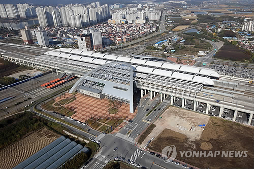 | △ KTX 오송역 (청주=연합뉴스) 박재천 기자 = 호남고속철도 개통을 앞두고 있는 가운데 고속철도 분기역인 오송역 명칭 변경론이 확산하고 있다. 2015.2.11 <<연합뉴스 DB>> jcpark@yna.co.kr |