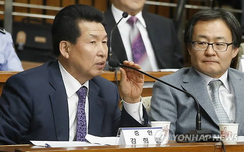 이날 청문회에는 강 명예회장 등 증인·참고인으로 15명이 출석했다. 이 중에는 새누리당 김동완 의원과 뇌물 혐의로 현재 교도소에 복역 중인 전 충남도청 공무원 최모씨도 포함됐다.