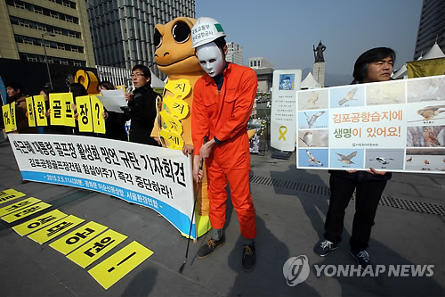 공대위는 "한국공항공사가 김포공항 골프장 건설을 위해 지난 2005년 내놓은 사전환경검토서는 사계절 조사를 해야 함에도 단 이틀만 조사한 부실 조사라 법정보호종은 하나도 발견되지 않았다"면서 "하지만 시민단체와 학계의 조사 결과 법정보호종 32종이 발견됐다"고 지적했다.
