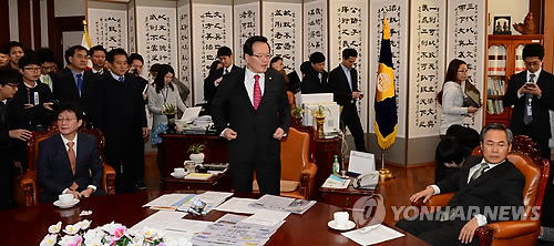 이처럼 인준안 표결을 놓고 여야가 해법을 못 찾고 첨예하게 대치하자 정의화 국회의장은 이날 오전 여야 원내대표를 불러 중재에 나섰으나 실패했다.