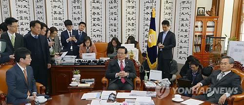 | △ 총리 임명동의안 논의하는 정의화 의장과 여야 원내대표 |