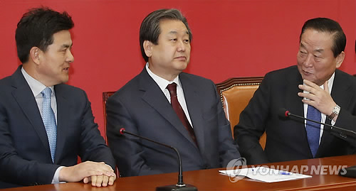 (서울=연합뉴스) 김경희 류미나 기자 = 새누리당 김무성 대표는 12일 이완구 국무총리 후보자 인준동의안 표결을 16일로 연기하자는 새정치민주연합의 제안을 수용한 것과 관련, 어쩔 수 없는 선택이었다고 밝혔다.