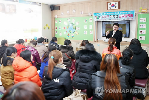 | △ 울산교육청 다문화 학부모 취학전 입학 설명회 (울산=연합뉴스) 김근주 기자 = 울산시교육청은 12일 야음초등학교에서 다문화 학부모를 대상으로 자녀 취학전 입학 설명회를 열었다. 2015.2.12 canto@yna.co.kr |