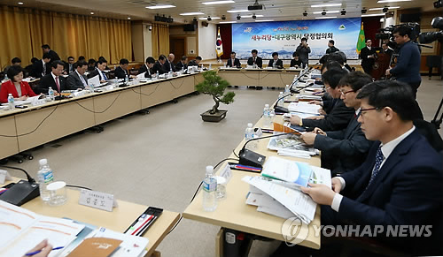 | △ 새누리당-대구시 당정협의회 (대구=연합뉴스) 김준범 기자 = 11일 오후 대구 중구 대구광역시청에서 새누리당-대구광역시 당정협의회가 올해 들어 처음으로 열렸다. 이번 당정협의회에는 새누리당 원내대표에 당선된 유승민 의원도 참여했다. 2015.2.13 psykims@yna.co.kr |