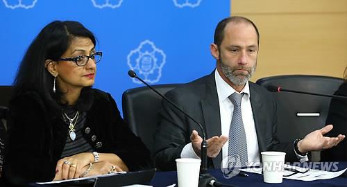 | △ 의견 말하는 애잇큰 IMF 협의단장 (서울=연합뉴스) 황광모 기자 = 13일 오후 서울 세종로 정부서울청사에서 열린 2015년IMF 연례협의 결과 브리핑에서 브라이언 애잇큰 IMF 협의단 단장이 한국 경제와 관련한 IMF의 의견을 발표하고 있다. |