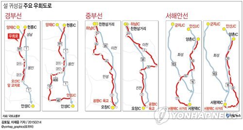 (서울=연합뉴스) 김윤구 기자 = 지난해 설 귀성길에 고속도로 정체가 심할 때 우회도로를 이용해 최대 46분을 단축할 수 있었던 것으로 나타났다.