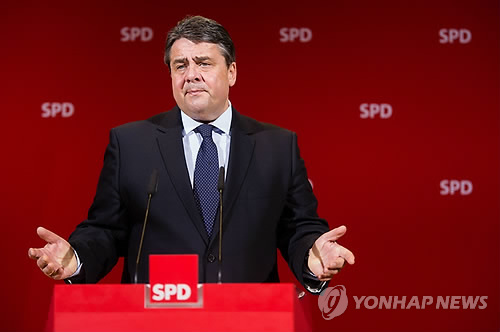 | △ 사회민주당 당수이자 독일 부총리인 지그마르 가브리엘이 연설을 하고 있다. (EPA=연합뉴스) |