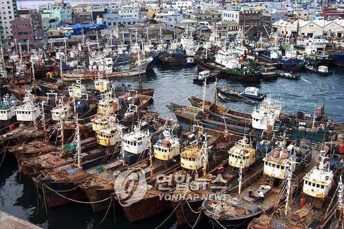 | △ 해양수산부는 올해 연근해 어선 463척을 감척할 계획이라고 밝혔다. 사진은 태풍의 간접영향권에 들어간 남해안에서 조업중이던 연근해 어선들이 부산항으로 대피해 있는 모습.(연합뉴스 자료사진) |