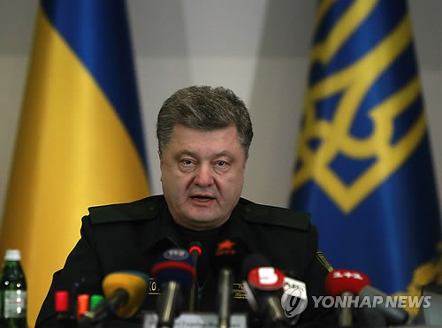 (아르테미프스크·키예프 AP·AFP=연합뉴스) 페트로 포로셴코 우크라이나 대통령이 18일(현지시간) 정부군과 분리주의 반군 간의 치열한 교전이 벌어진 동부 지역에 유엔이 관장하는 평화유지군 파병을 요청했다.