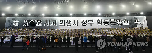 (안산=연합뉴스) 최종호 기자 = 설인 19일 오전 경기도 안산시 화랑유원지에 마련된 세월호 참사 희생자 정부합동분향소.
