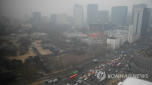 | △ 미세먼지로 서울 중구 소공동의 한 건물에서 바라본 서울 도심이 뿌옇게 보이고 있다.(연합뉴스 자료사진) |