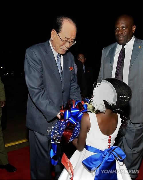 | △ 北 김영남, 우간다 방문 (평양 조선중앙통신=연합뉴스) 아프리카를 순방 중인 북한 김영남 최고인민회의 상임위원장이 우간다를 공식 친선 방문하기 위해 29일 캄팔라에 도착했다고 30일 조선중앙통신이 보도했다. 2014.10.30 seephoto@yna.co.kr |