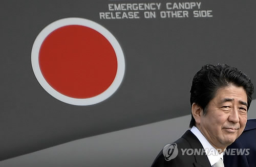 | △ (EPA=연합뉴스 자료사진) 지난해 10월 일본 자위대 창설 60주년 기념행사에 참석한 아베 신조 일본 총리 |