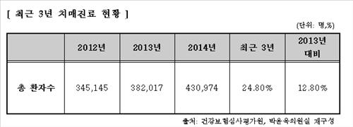 2012년과 비교하면 환자 수는 24.8%, 진료비는 43.6%가 늘었다.
