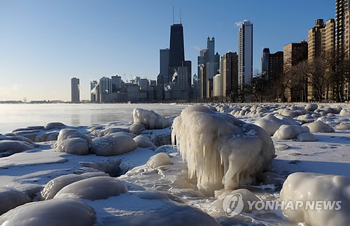 | △ 시카고 도심 인근의 얼어붙은 미시간호수 (AP=연합뉴스) |