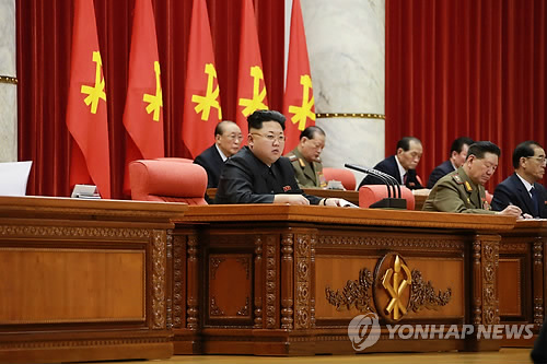 | △ 北 김정은 위원장, 노동당 중앙위 정치국 확대회의 개최 (평양 조선중앙통신=연합뉴스) 조선중앙통신은 19일 김정은 북한 국방위원회 제1위원장이 지난 18일 노동당 중앙위원회 정치국 확대회의를 열어 '주민생활 향상'을 가장 중요한 국가적 목표로 내세우며 당의 역량을 이에 집중할 것을 독려했다고 보도했다. 2015.2.19 photo@yna.co.kr |