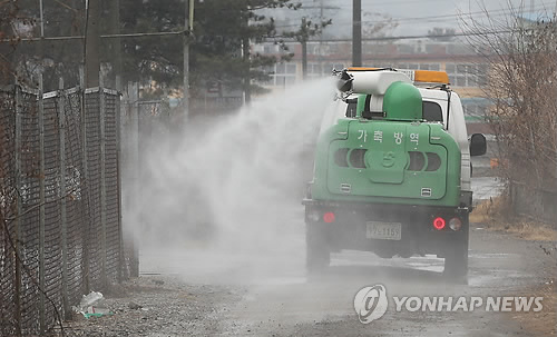 | △ 설 앞두고 방역 소독 강화 (포천=연합뉴스) 임병식 기자 = 농림축산식품부가 설을 앞두고 전국에서 구제역과 조류인플루엔자(AI) 등 가축질병 확산을 막기 위해 일제소독을 실시하기로 한 가운데 16일 오후 경기도 포천시 영중면에서 방역차량이 소독약을 살포하고 있다. 2015.2.16 andphotodo@yna.co.kr |