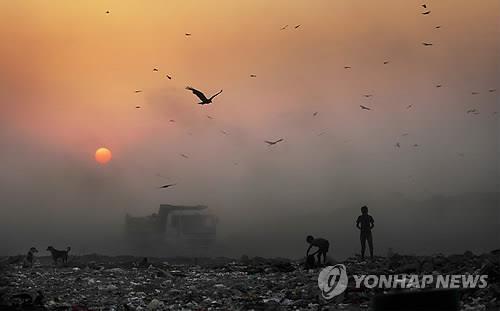 | △ 뉴델리 쓰레기 폐기장의 넝마주이들 (AP=연합뉴스 자료사진) |