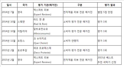 세탁기 사건 발생 이후인 지난해 10월에는 스웨덴과 이탈리아의 소비자 평가 전문 매거진 '라드 앤 론'(Rad & Ron)과 '알트로컨슈모'(Altroconsumo) 평가에서 각각 1위에 올랐고, 11월에는 프랑스 소비자 연맹지 '크 슈아지르'(Que Choisir)로부터 1위 평가를 받았다.