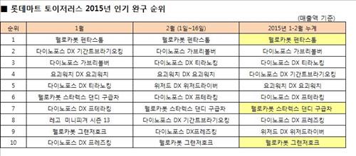 반면 작년 상반기(1~6월) 전체 완구 시장 매출 1~3위(또봇 쿼트란·R·D)를 휩쓸었던 또봇 시리즈의 경우 올해 들어서는 10위 안에 한 제품도 이름을 올리지 못했다.