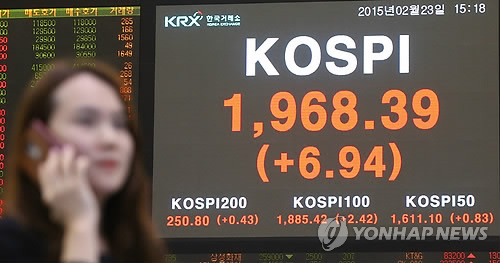 이날 코스피는 전 거래일보다 6.94포인트(0.35%) 오른 1,968.39에 거래를 마쳤다.