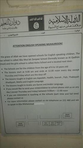 IS는 그간 선전 동영상 등을 통해 아랍어로 수업하는 초등학교와 아동 군사훈련소를 공개한 적이 있지만 자체 영어학교를 설립했다고 밝힌 것은 이번이 처음이다.